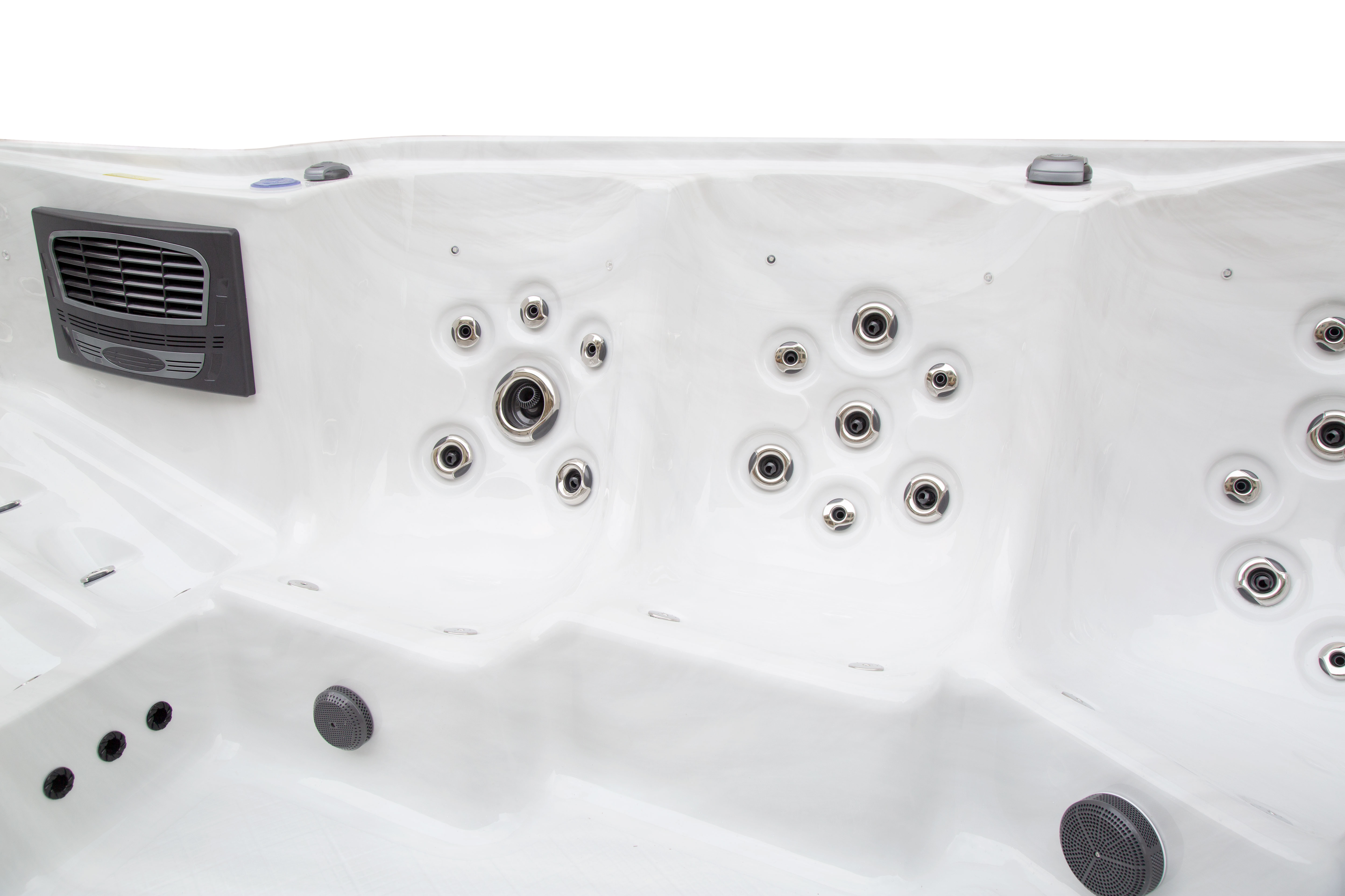 Чаша вашего спа-бассейна изготовлена из Lucite® Sterling Silver — это не просто акрил, а эталонный материал премиум-класса, производимый в США по запатентованным технологиям. В отличие от обычного акрила, который со временем может терять прозрачность и желтеть, Lucite гарантирует: